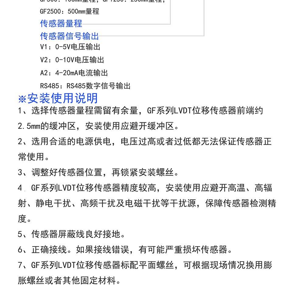 米蘭特GF系列LVDT位移傳感器
